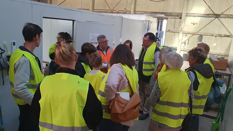 On the tour, we pass by a pallet loaded high with jars of unopened peanut butter that has passed its expiry date and would otherwise be sent to landfill. Next to it is a crate of bio-waste/manure.