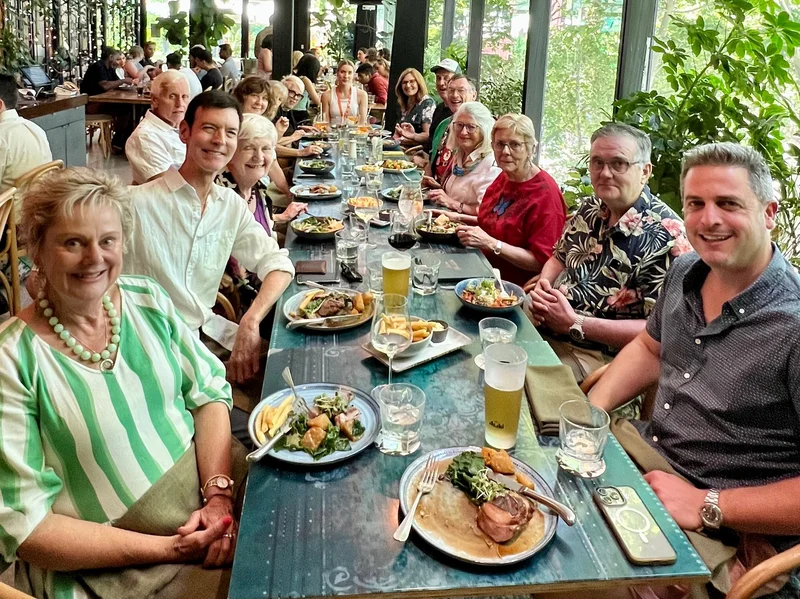 Sixteen HMAA members met for a Christmas lunch at Green Moustache in North Sydney. It was an appropriately lush, green-filled venue overlooking a busy but leafy Miller Street, which is lined with Platanus (London plane trees). It was like turning away from the city as we entered through the magical flowery elevators and stepped into the rooftop restaurant filled with festive revellers.