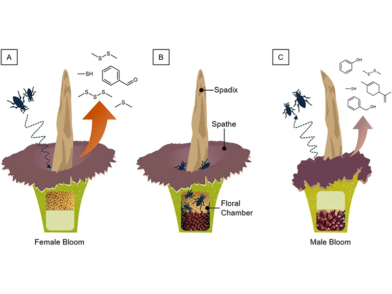 Efficient Pollination Stinks: Corpse Flowers Use Floral Trapping and Persistent Emissions