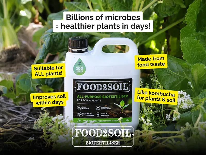 From their All-Purpose Biofertiliser, suitable for all plants, to their Soil Health Booster, Natural Gardener’s Soap, and the latest Biochar (coming soon) – Food2Soil offers solutions for every kind of plant, soil, and gardener, from home gardeners to broad-acre farmers.