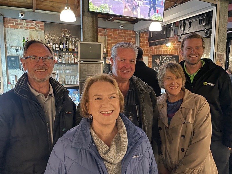 Landscape architect and HMAA member Jim Fogarty presented a landscape masterclass to members of the Landscaper Industries Association in Western Australia when he visit the state this week. WA members caught up with Jim at an outdoor drinks function at the Rose and Crown Hotel in Guildford. Deryn Thorpe reports it was the coldest day of the year in Perth (August 9) so everyone dug out their warmest jackets.