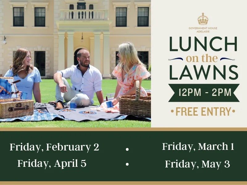 Lunch on the Lawns is part of Her Excellency’s and Mr Bunten’s aim to make Government House a place where more South Australians feel welcome and are able to visit.