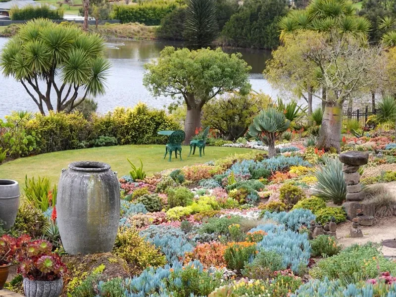 Attila and Michele Kapitany have listed their property at Narre Warren North for sale. The 4000 square metre property features a magnificently landscaped garden planted with succulent collections, Australian natives including many mature bottle trees and sweeping lawns that flow around a lake. Many of the plants are rare and valuable and have been collected by Attila and Michele over decades. The large house site is positioned with views over the garden and its surroundings.