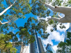 Sydney’s urban and suburban areas boast substantial coverage of evergreen broadleaf forests, particularly eucalyptus trees, and the city has recently debated planting millions more to combat rising temperatures.