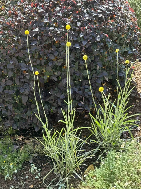 Nearing the front of the House with its magical harbour views, Rick outlined his efforts over the past year. He has ‘rescaled’ the height of the garden beds flanking the path leading to the central fountain and the harbour vista beyond. The challenge is to ensure the plants provide an attractive foreground without infringing on harbour views. Lower growing species have been planted – core plants are clipped into low mounds and interspersed with a visually interesting and colourful mix of various annuals and perennials. These include Australian natives such as flannel flowers (Actinotus helianthi) and billy buttons (Pycnosorus globosus syn. Craspedia globosa). Paper daisies (Xerochrysum bracteatum) also grow well in several of the gardens.