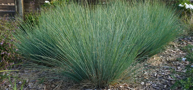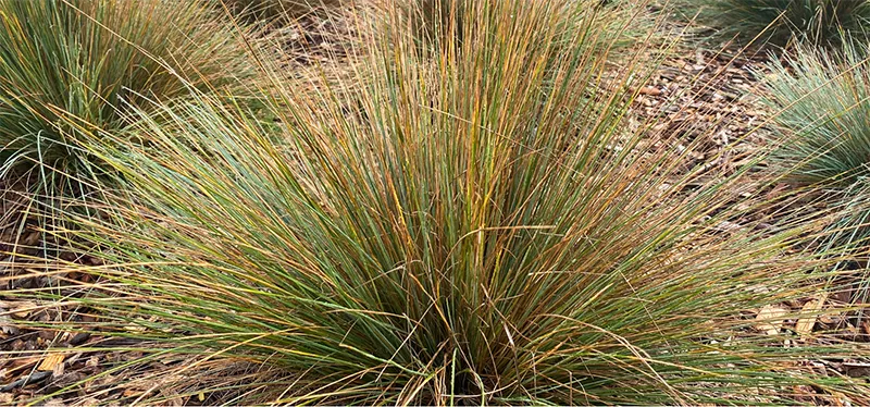 This attractive blue-toned native grass is an alternative to Rustic™ Poa that won’t turn bronze as quickly. It has attractive, arching foliage and feathery plumes and establishes very quickly, with a mature plant within a year after planting tubestock. 45cm high x 45cm wide.