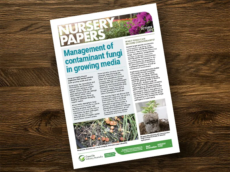 This nursery paper will discuss how contaminant fungi enter the nursery environment, how to recognise them, and how they affect the properties of growing media. It will also provide guidelines on preventative measures to minimise the risk of contamination, as well as remedial actions to address infestations when they occur.