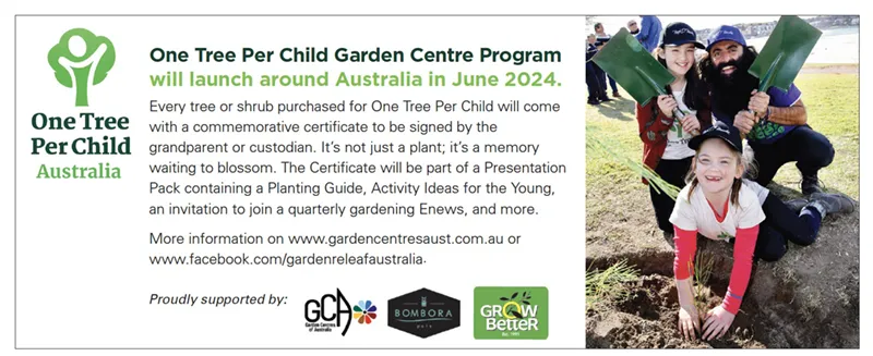GCA is thrilled to announce its partnership with One Tree Per Child, which began as a grassroots tree-planting initiative in schools, councils, and communities. Now, through GCA, we are rolling out One Tree Per Child as an ongoing program to engage children and promote gardening as a wonderful activity for the whole family. It’s not just about the trees; it’s about sowing the seeds of environmental consciousness and stewardship.