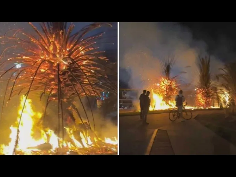 Police investigating after iconic palm trees go up in flames on Melbourne foreshore: 9News