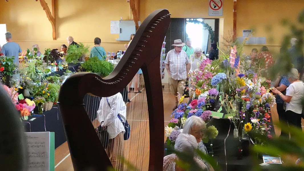 There’s also a flower display on the stage that acts as a backdrop for the show and as a setting for harpist and Sheffield local, Kate Fraser, who plays though out the event. Harp music is relaxing and works well with flowers and the acoustics!