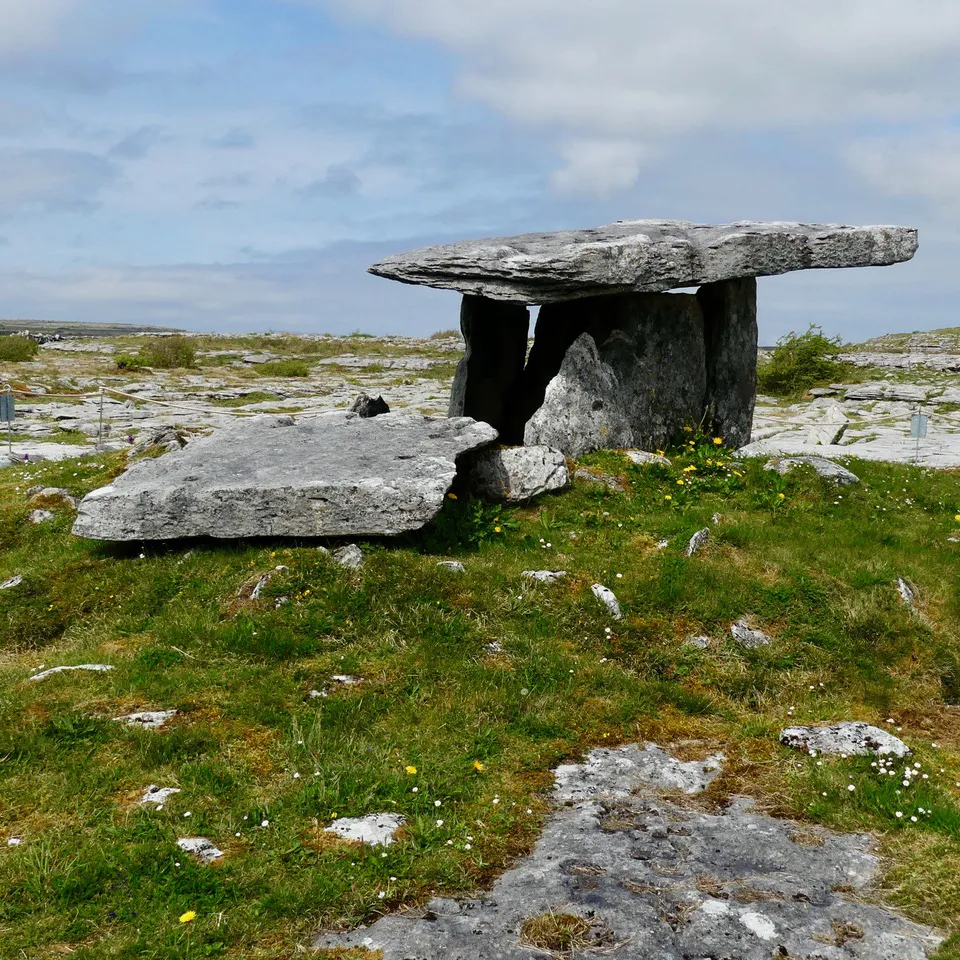 The Cliffs of Moher are located at the southwestern edge of The Burren region in County Clare, the second most visited place in Ireland. The word “Burren” comes from an Irish word “Boíreann” meaning a rocky place and it is certainly that. The Burren is a vast cracked pavement of ancient limestone, with cliffs and caves, fossils, rock formations and archaeological sites. It has over 70% of Ireland’s native flowers including beautiful ground orchids scattered throughout. We visited the famous Poulnabrone Dolmen, a megalithic stone tomb located at one of the highest points of the Burren, built over 5,800 years ago. The Burren also contains the ruins of numerous tower houses, castles, stone forts and churches, many built over 1000 years ago.
