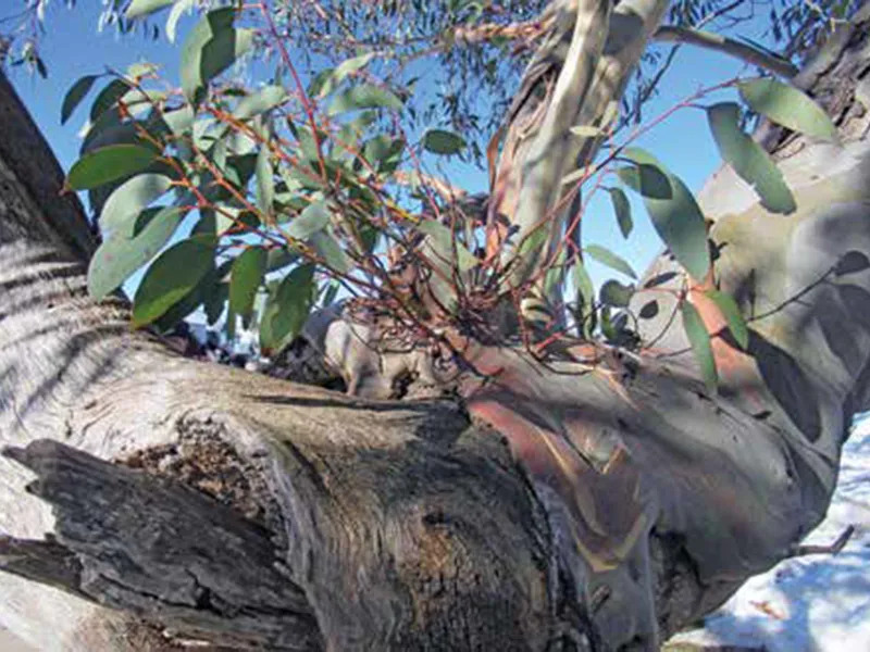 Eucalyptus pauciflora is long-lived and slow growing. It is one of the few eucalypts which can be transplanted as large specimens because of its fibrous