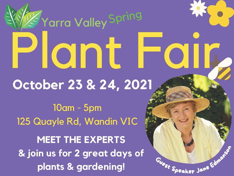 Jane Edmanson will be one of the guest presenters at Yarra Valley Plant Fair, which is going ahead in Wandin in Victoria over the weekend of October 23-24. The Fair is held at Larkman’s Nursery at their Wandin site (125 Quayle Road) and is on 10am-5pm both days.